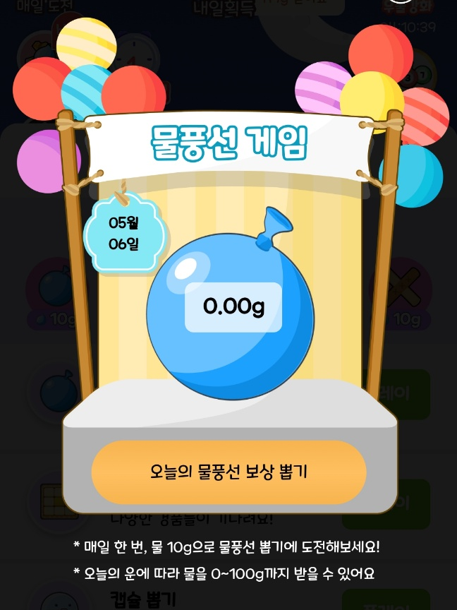 다음으로 물을 받는 방법인데요. 물을 받는 방법은 우물에서 물을 받는 방법과 작물에 물을 주면 받게 되는 보너스 물이 있어요! 그리고 중요한 것은 '아케이드'인데요! 말 그대로 놀이를 통해서 물과 비료를 얻는 방법이에요! 총 4가지가 있지만 이 중에 손쉬운 것은 3가지인데요! 물풍선 게임, 럭키 드로우, 캡슐 뽑기 는 반드시 해야 합니다